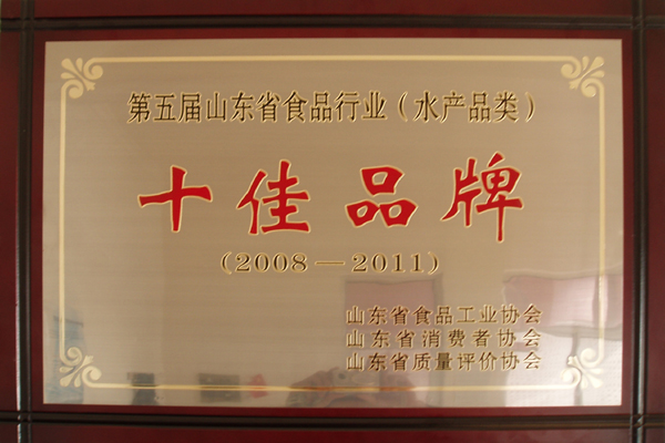我公司獲得第五屆山東省食品行業(水產品類)十佳品牌